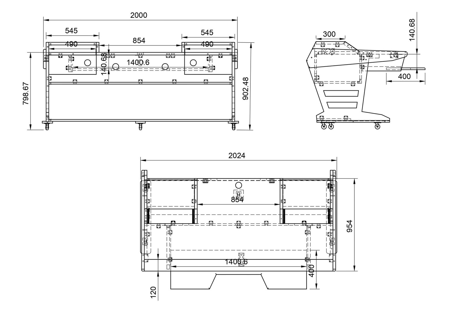 רוחב 2.02 מטר, עומק 95.4 ס"מ, גובה 80 ס"מ מהרצפה עד הדק המרכזי, כולל גלגלים.